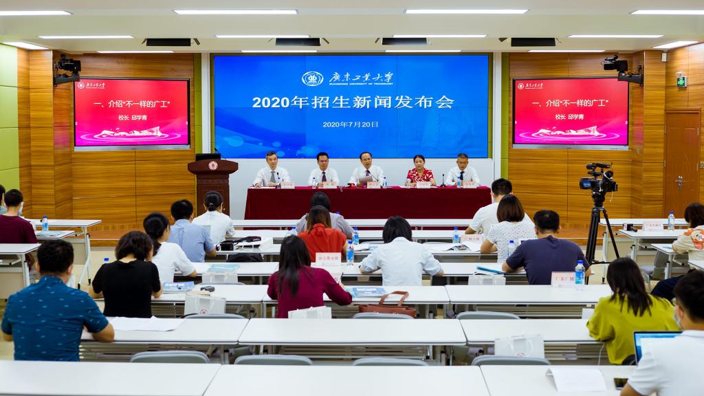 本网讯 又到了一年一度的高考填报志愿时间。为了让广大考生和家长,以及社会各界了解学校的发展新动态、人才培养新亮点、招生新变化,7月20日上午,明博电竞官网2020年招生新闻发布会在大学城校区实验三号楼智慧课室举行。会上,校长邱学青从学校的办学实力和水平、人才培养特色亮点、促进学生全面发展举措、招生政策和变化等方面介绍了一个“不一样的广工”,并生动阐述了广工“大、实、特、快”四个鲜明特征。教务处处长李丽娟、学生工作处处长植林、招生办公室主任苏兆祥分别发布了相关信息。发布会上,回答了记者、考生及家长提出的问题。