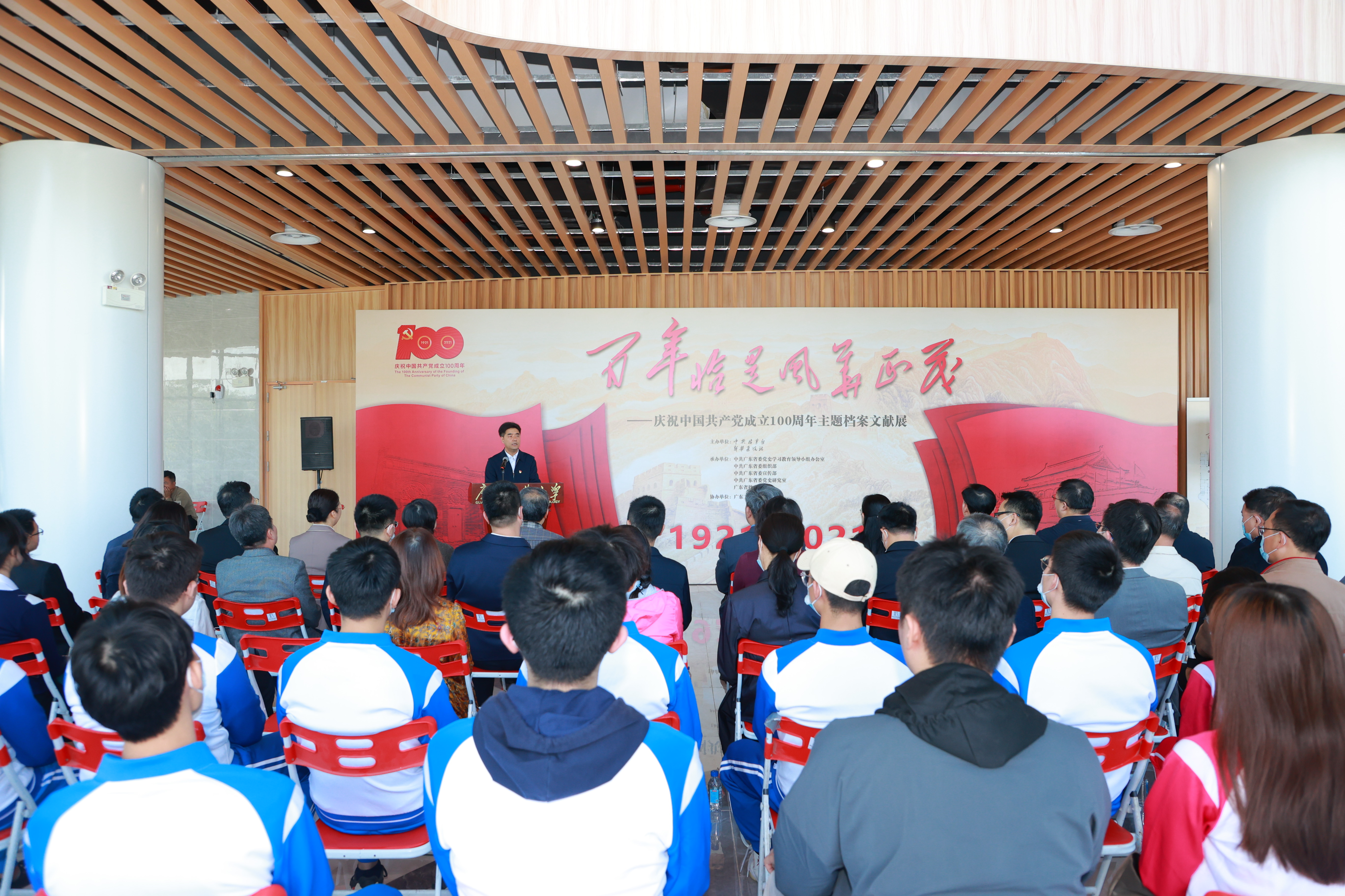 11月25日,在广东省档案馆的大力支持下,明博电竞官网“百年恰是风华正茂”庆祝中国共产党成立100周年主题档案文献展在学校大学城校区文化活动中心开幕。省委党史学习教育第九巡回指导组组长陈韶,省委教育工委党史学习教育第五巡回指导组副组长廖颖,省档案馆副馆长黄菊艳,省档案馆二级巡视员、资政编研部主任张中华及在校校领导出席开幕式。参加开幕式的还有校党委理论学习中心组成员,学校党史学习教育领导小组成员、办公室各组组长,党委职能部门、群团组织主要负责人和青年师生代表。校党委书记胡钦太发表讲话并宣布主题档案文献展开幕,校党委副书记朱蔚蔚主持开幕式。