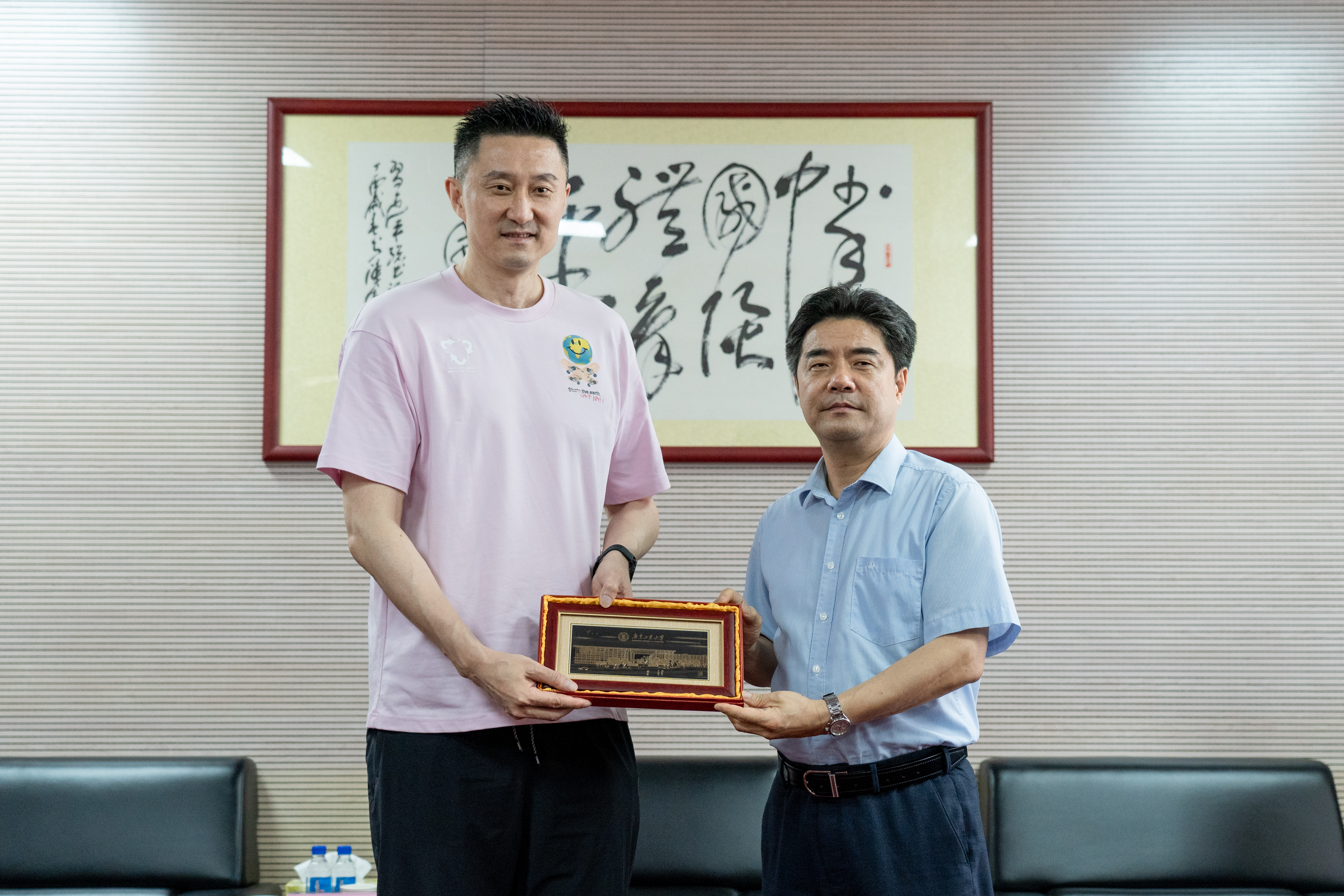 胡钦太对杜锋回到母校表示热烈欢迎,邱学青向杜锋介绍了近年来学校体育发展情况,感谢他回校为师弟师妹带来精彩的分享活动。杜锋感谢母校对自己的培养、关心与支持,希望可以为母校做力所能及的事情。双方互赠纪念品。