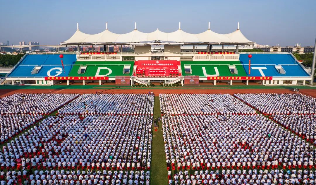 9月15日上午,广工2022级新生开学典礼(主会场)在大学城中心田径场举行。东风路校区、龙洞校区、番禺校区、揭阳校区设分会场。分会场师生收看主会场网络视频直播,远程参加相关典礼仪式。广工一万四千余名新生,校领导及相关部门主要负责人参加了典礼。