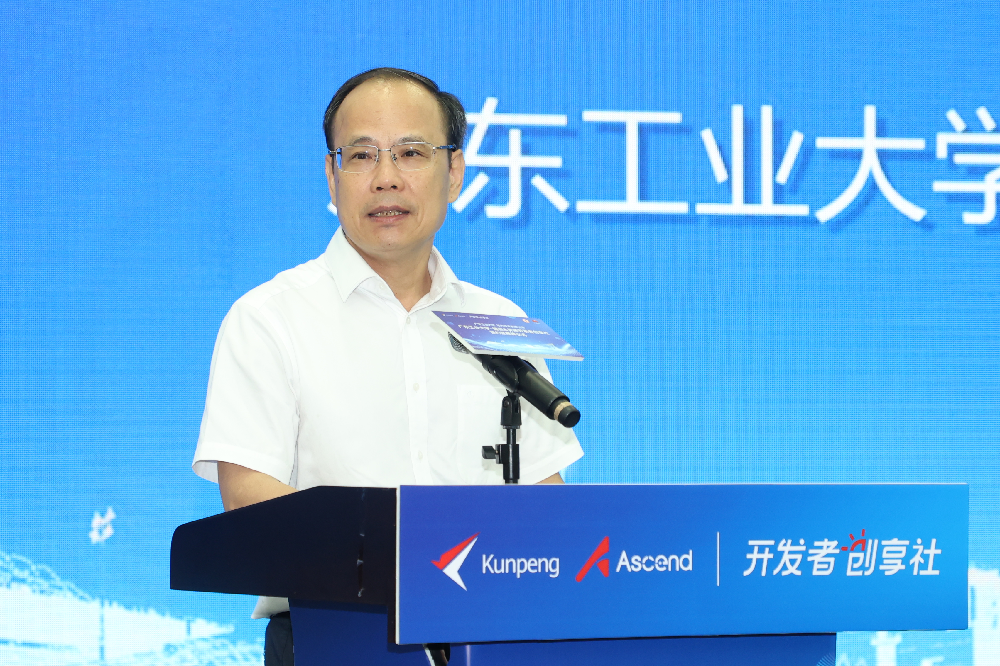 姜涛在致辞中指出,希望与广工一起,围绕鲲鹏、昇腾计算产业根技术,一方面通过“智能基座”合作,将鲲鹏、昇腾产业知识融入理工科培养课程,帮助学生建立系统性的理论知识体系;另一方面,通过创享社合作,使产教融合覆盖更多跨领域融合学科的本科生及硕博人才,加速学生从理论学习向产业实战、研究创新转化。作为创享社合作计划落地的首个高校,姜涛希望广工创享社能成为全国计算产业实践创新的样板示范,以精细化运营组织跨学科、跨年级的多样性实践活动,源源不断孵化出围绕自主根技术的产业创新项目、科研项目,并以新型人才培养方式驱动鲲鹏、昇腾开发者高质量成长。