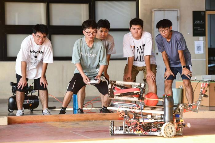 (广工学生进行全国机器人大赛赛前作品调试,学校供图)