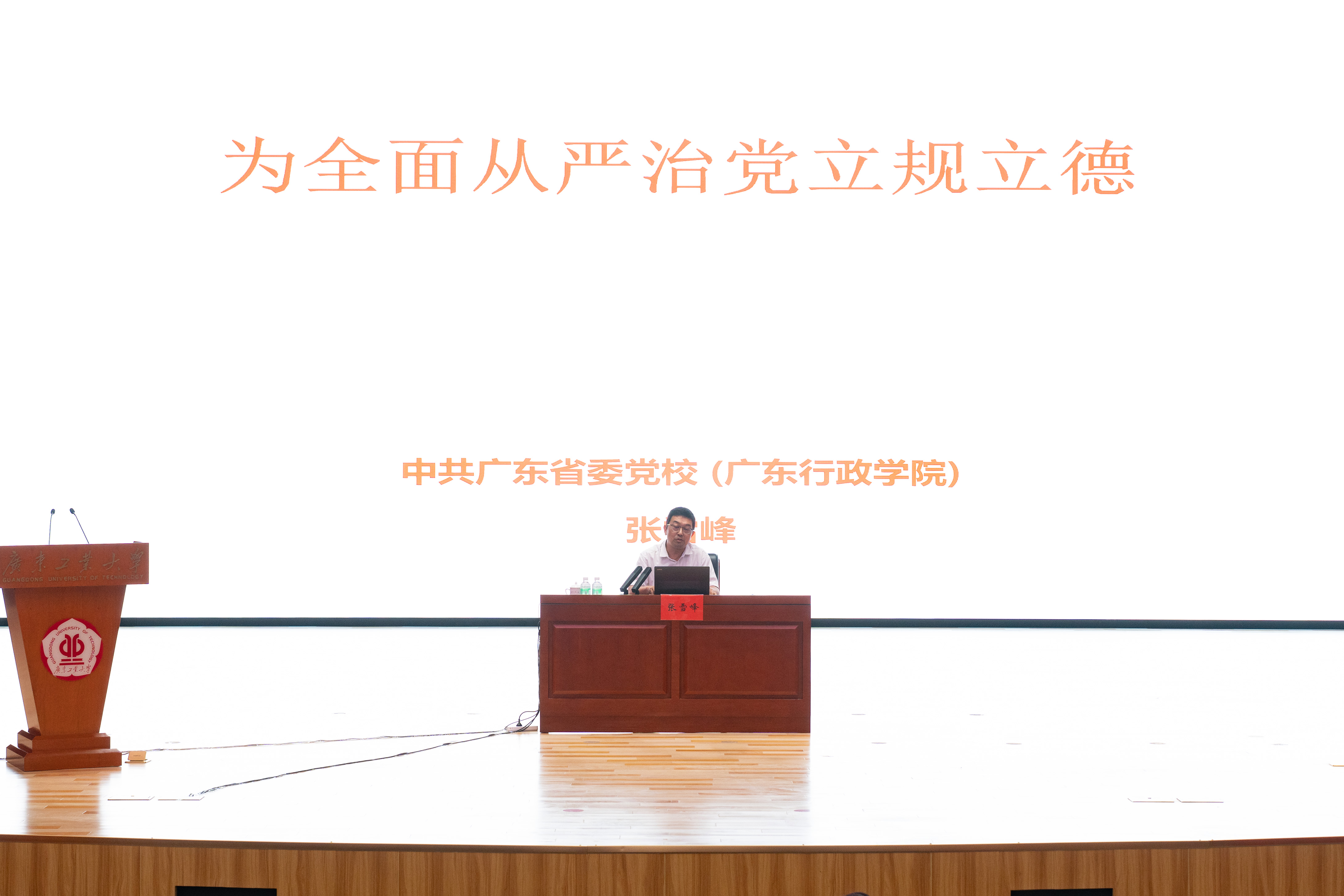 中共广东省委党校张雪峰教授应邀作题为《为全面从严治党立规立德》的专题辅导报告。张教授围绕习近平总书记关于全面从严治党、推进自我革命的重要论述,以“立规”与“立德”为主线,结合古今中外历史、名言典故、典型案例、数据分析,从历史与现实的维度讲授了标本兼治是我们党管党治党的一贯要求,告诫与会同志要深入学习、严格遵守党章党规党纪,自觉守牢纪律的底线、树起道德的高线,深刻领会新时代党的建设总体要求,推动全面从严治党向纵深发展,永葆党的先进性和纯洁性。