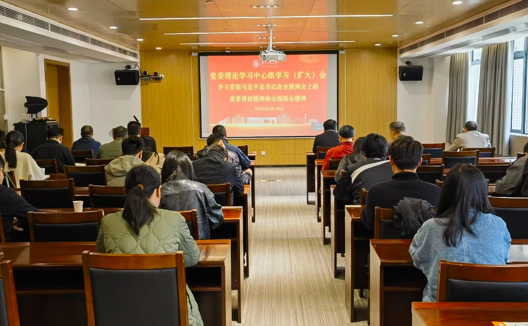 3月18日下午,明博电竞官网召开党委理论学习中心组(扩大)学习会,专题学习习近平总书记在全国两会期间的重要讲话和全国两会精神,传达全省干部大会精神。校党委书记胡钦太全面部署贯彻落实工作,强调要深入学习贯彻习近平总书记重要讲话和全国两会精神,振奋精神、团结奋斗、锐意进取、真抓实干,在高质量发展新征程上展现新作为新气象。校党委副书记、校长邱学青传达学习习近平总书记重要讲话和全国两会精神。全国政协委员李丽娟作学习辅导报告。校党委副书记朱蔚蔚主持会议。