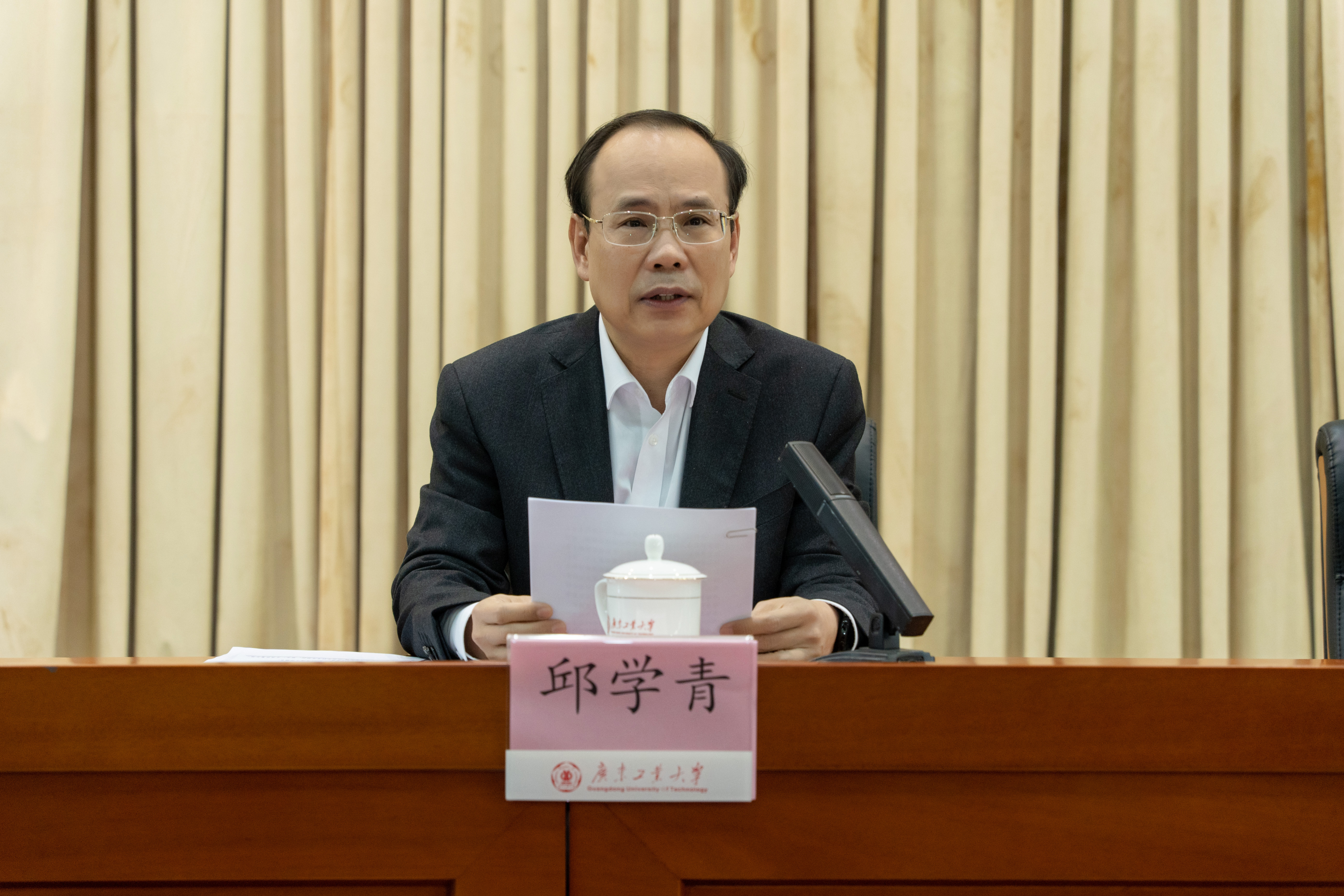 邱学青强调,要从党和国家工作大局中找准学校战略定位,充分发挥高校作为科技第一生产力、人才第一资源、创新第一动力重要结合点的作用,坚持以“冲一流”建设为目标牵引,以“1+2+3”攀撑计划为关键抓手,一体推进特色鲜明、国内一流、世界知名的高水平创新型大学建设。回答好建设教育强国、科技强国、人才强国“广工何为”的问题,为中华民族伟大复兴贡献广工力量。