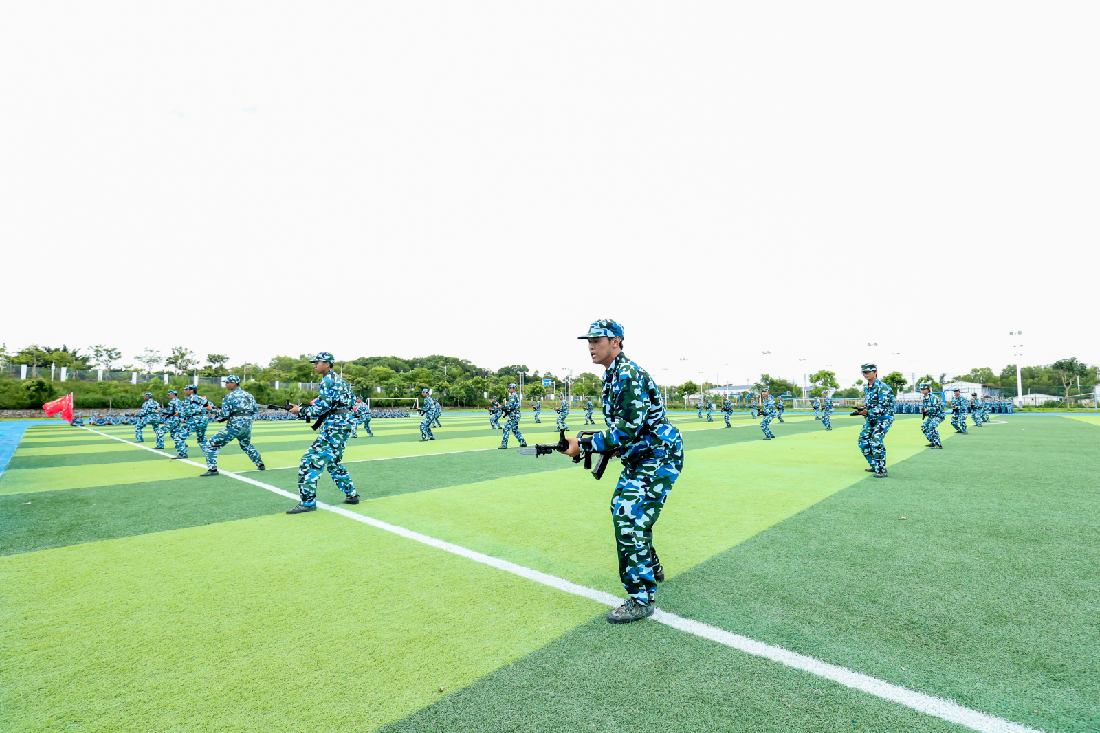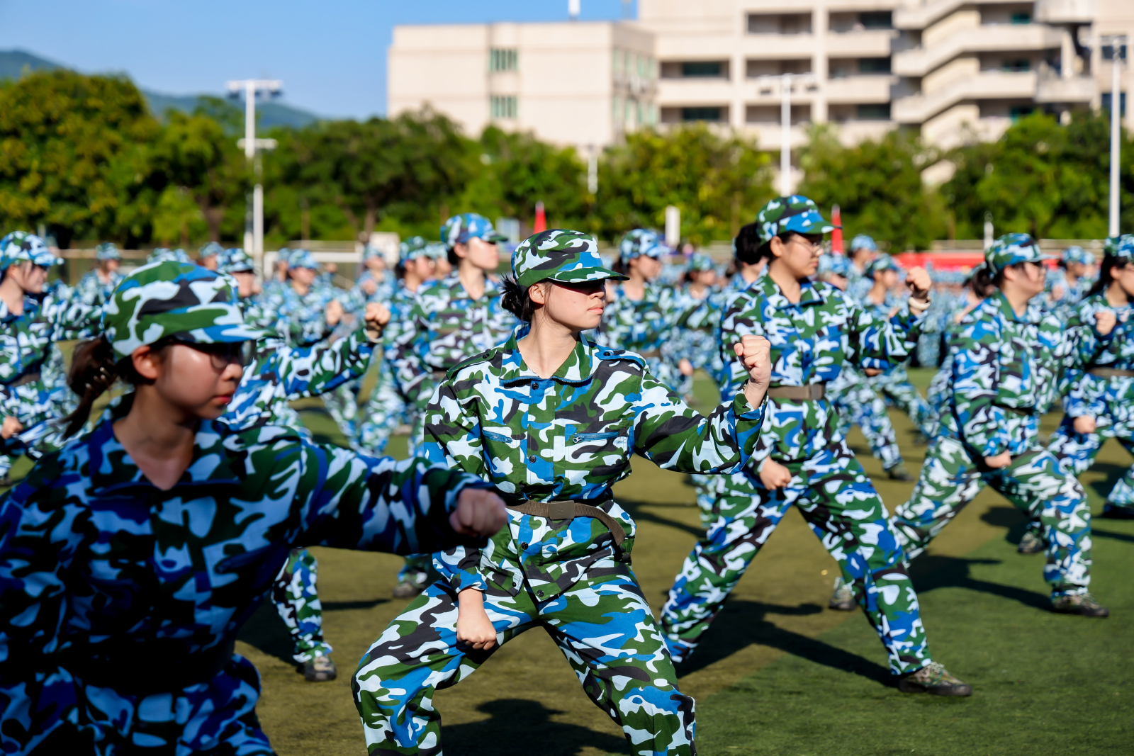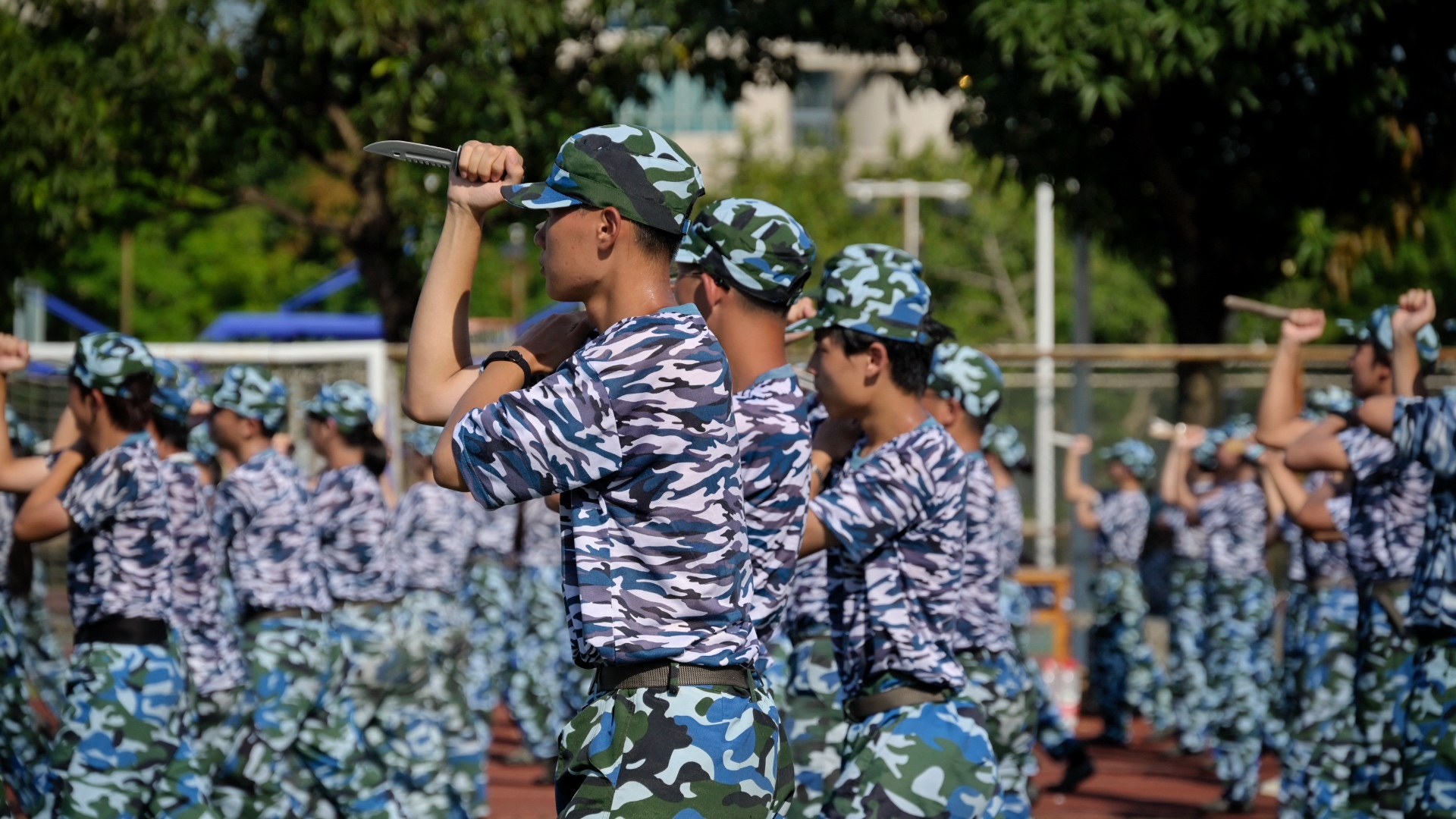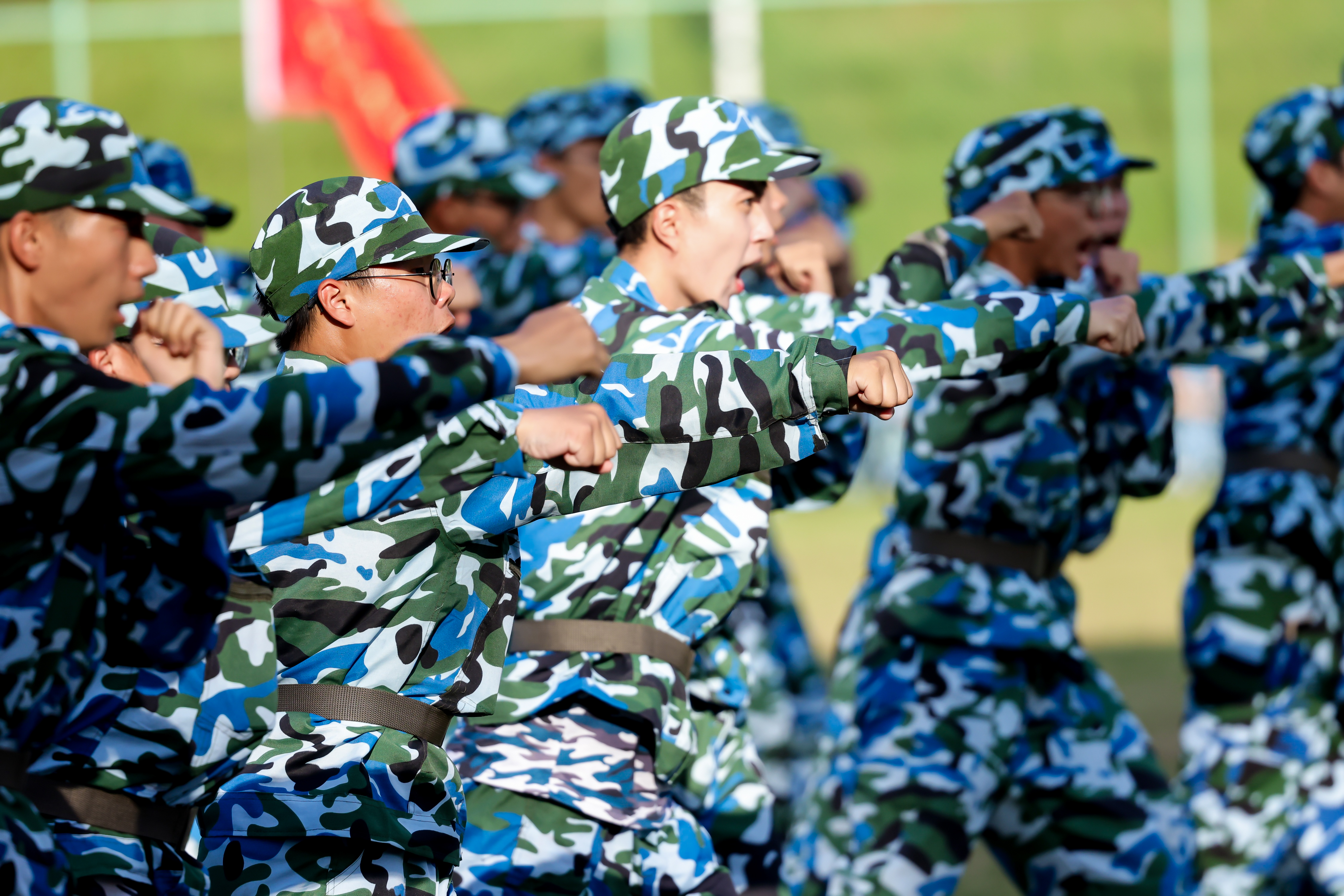 汇演中,同学们士气高昂、步伐矫健。擒敌拳、匕首操、水兵太极拳、旗语操、组合格斗术、刺杀操、军体拳、短棍术……飒爽的身姿,整齐的动作,拳起拳落,匕首生风,十四日淬火,铸就铮铮铁骨,现场气氛热火朝天,赢得师生们阵阵喝彩。