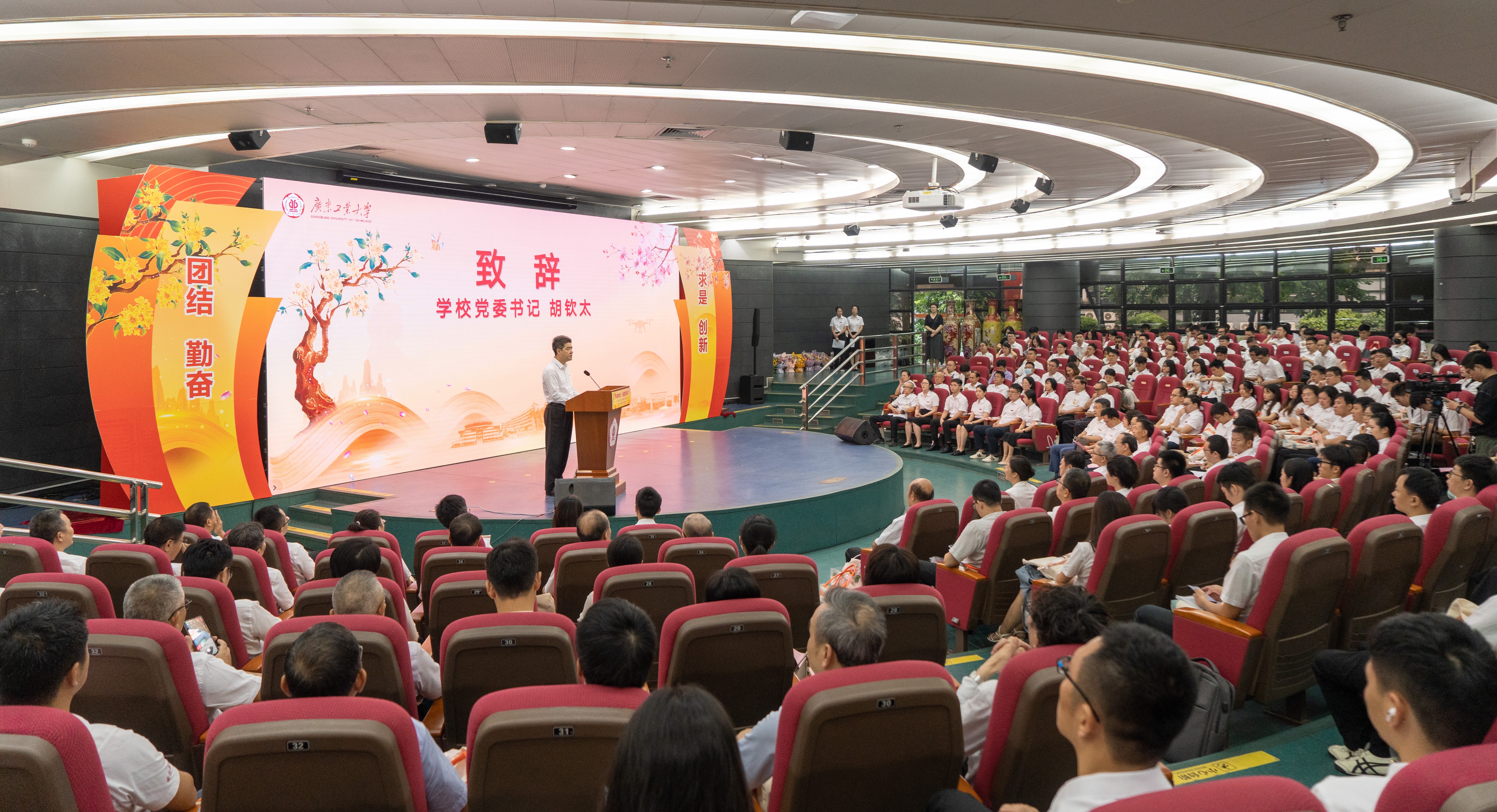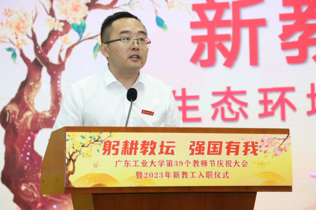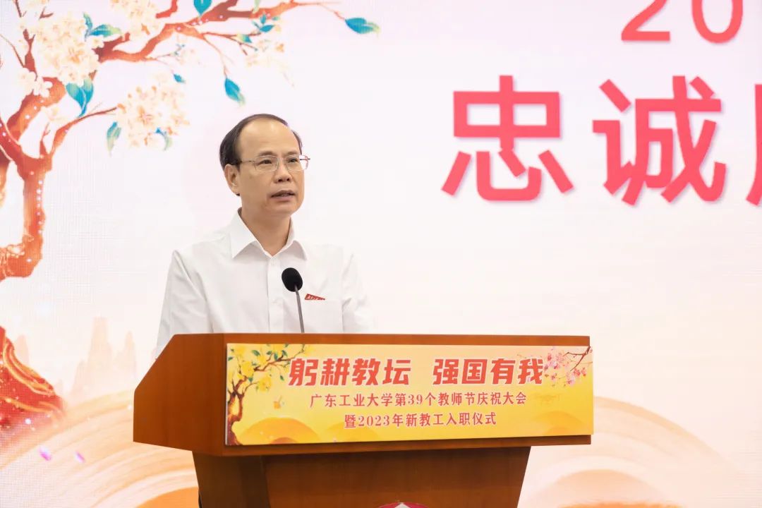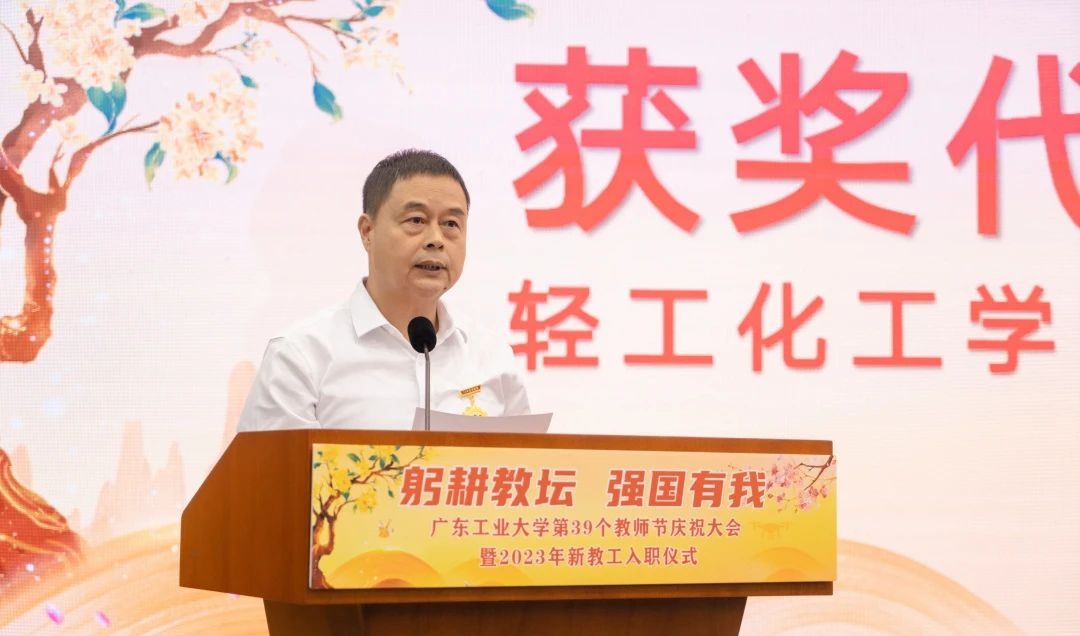 学校党委书记胡钦太致辞。他代表学校向辛勤耕耘在教学、科研、管理和服务一线的广大教师致以节日的问候和美好祝福!他强调,教师是立教之本、兴教之源,要深入学习贯彻习近平新时代中国特色社会主义思想和党的二十大精神,提高政治站位,踔厉奋发、铸魂育人,打造高素质、高质量教师队伍。他指出,作为一名人民教师,要有家国情怀、道德情怀、教学情怀和学术情怀,心怀“国之大者”,当理想信念的“筑梦人”、师德高尚的“引路人”、传道授业解惑的“大先生”。他寄语广大教师特别是新教工,不忘立德树人初心,胸怀大志、心有大我、肩负大任、行有大德,践行崇高师德、涵养师者匠心、厚植教育情怀,继续扎根南粤、砥砺前行,不断开创学校高质量发展新局面,为建设教育强国、科技强国、人才强国作出更大贡献。
