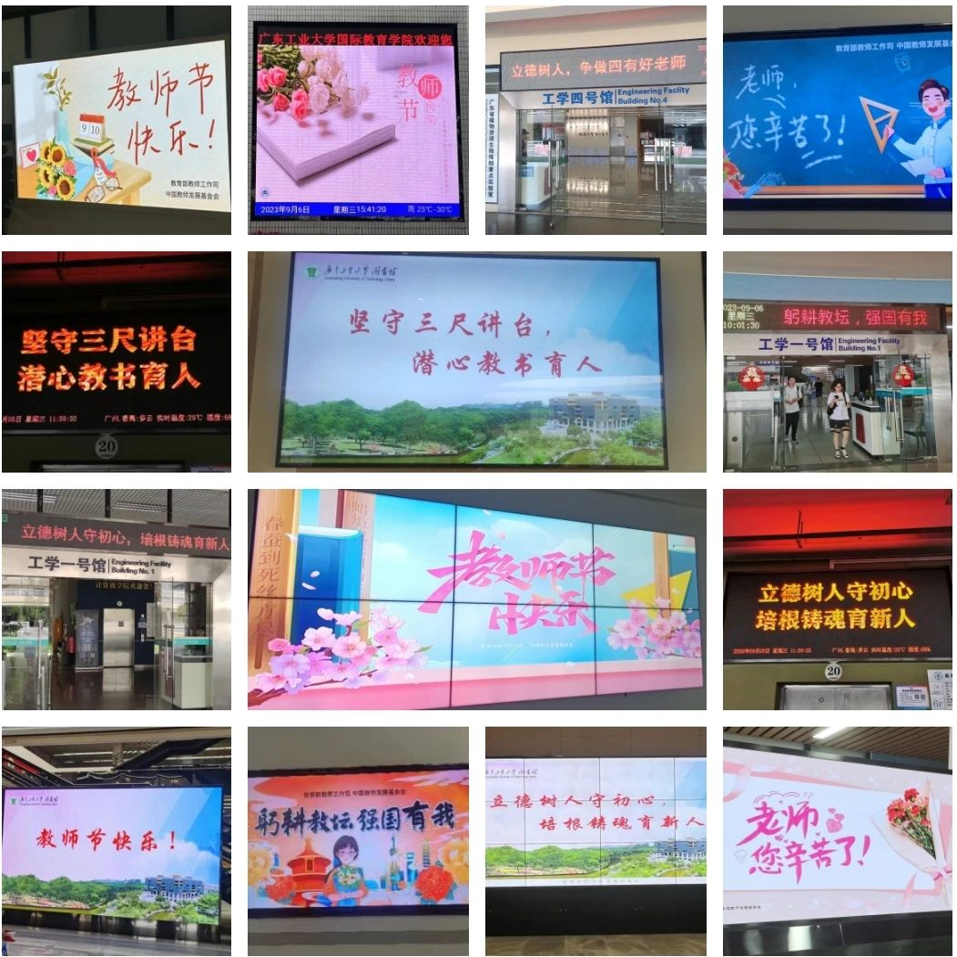 学校同时开展了“为教师亮灯”活动,在各校区办公楼、教学楼、实验楼等场所电子显示屏为教师“亮灯”,为广大教师送去节日的祝福!