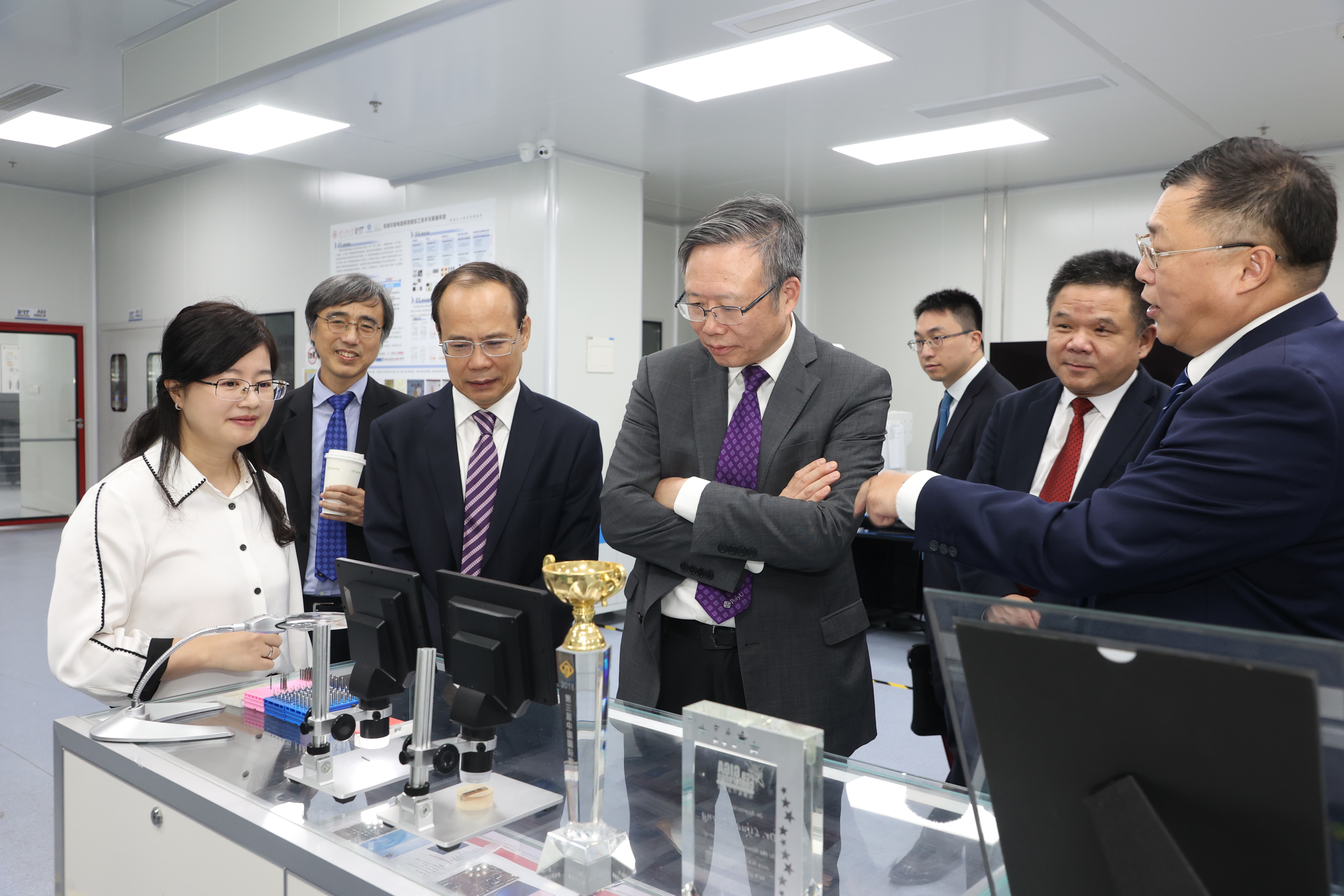 会见座谈之前,滕锦光一行在邱学青、杜承铭、王成勇、张学理等陪同下分别参观了创新创业学院、高性能工具全国重点实验室(明博电竞官网)。王成勇对高性能工具全国重点实验室(明博电竞官网)的相关建设及学术进展作了讲解。张学理介绍了创新创业教育的育人成果及粤港澳合作情况。滕锦光还与相关师生进行亲切交谈,了解学校创新创业教育情况及前沿技术成果。