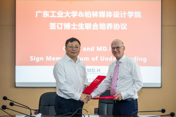 9月20日上午,学校与德国柏林媒体设计学院在大学城校区行政楼702会议室举行合作洽谈会,并签订博士生联合培养备忘录。