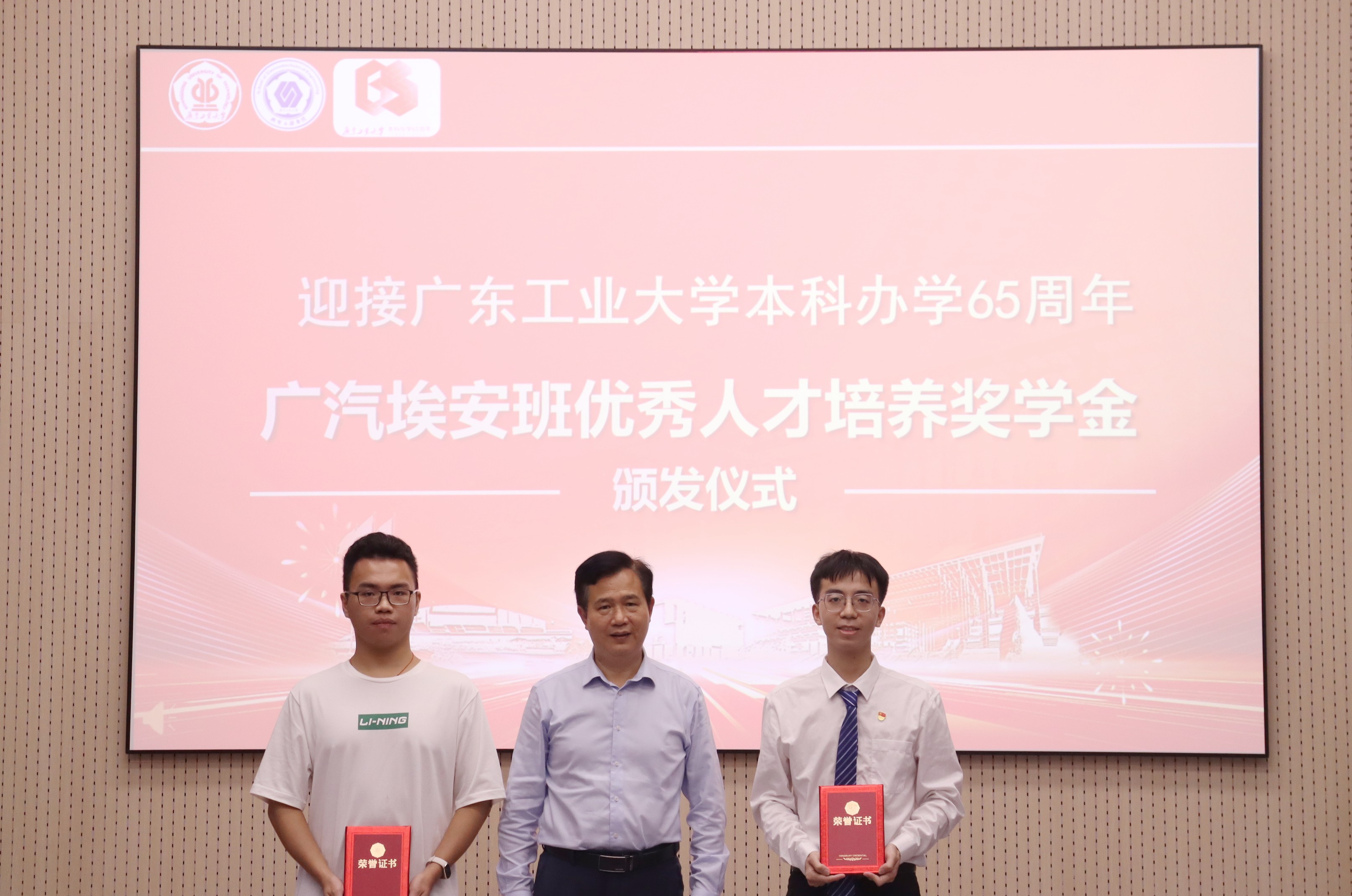 恰逢迎接学校本科办学65周年之际,9月24日上午,学校党委常委、副校长鲁仁全会见广汽埃安新能源汽车股份有限公司总经理、87届校友古惠南,并参加广汽埃安班优秀人才培养奖学金颁发仪式。奖学金由东莞市东城埃安汽车销售服务有限公司董事长、91届校友卢贯霭捐赠设立,用于奖励在广汽埃安班中勤奋好学、品学兼优的同学。学校对外联络与校友事务办公室、机电工程学院班子成员和师生代表出席仪式。