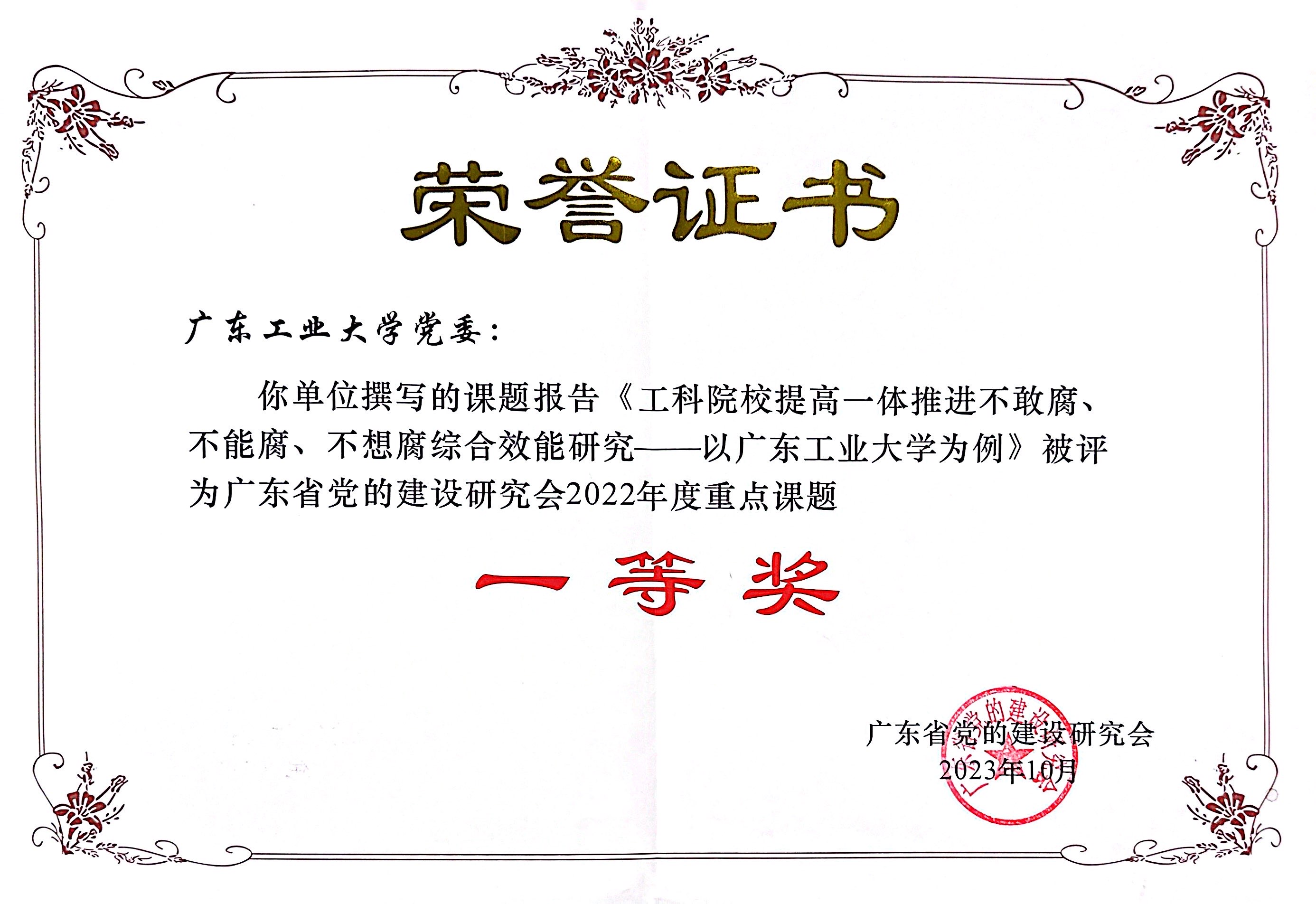 近日,广东省党的建设研究会公布2022年度重点调研课题优秀成果,学校党委撰写的课题调研报告《工科院校提高一体推进不敢腐、不能腐、不想腐综合效能研究—以明博电竞官网为例》荣获一等奖。该课题由校党委书记胡钦太任组长。