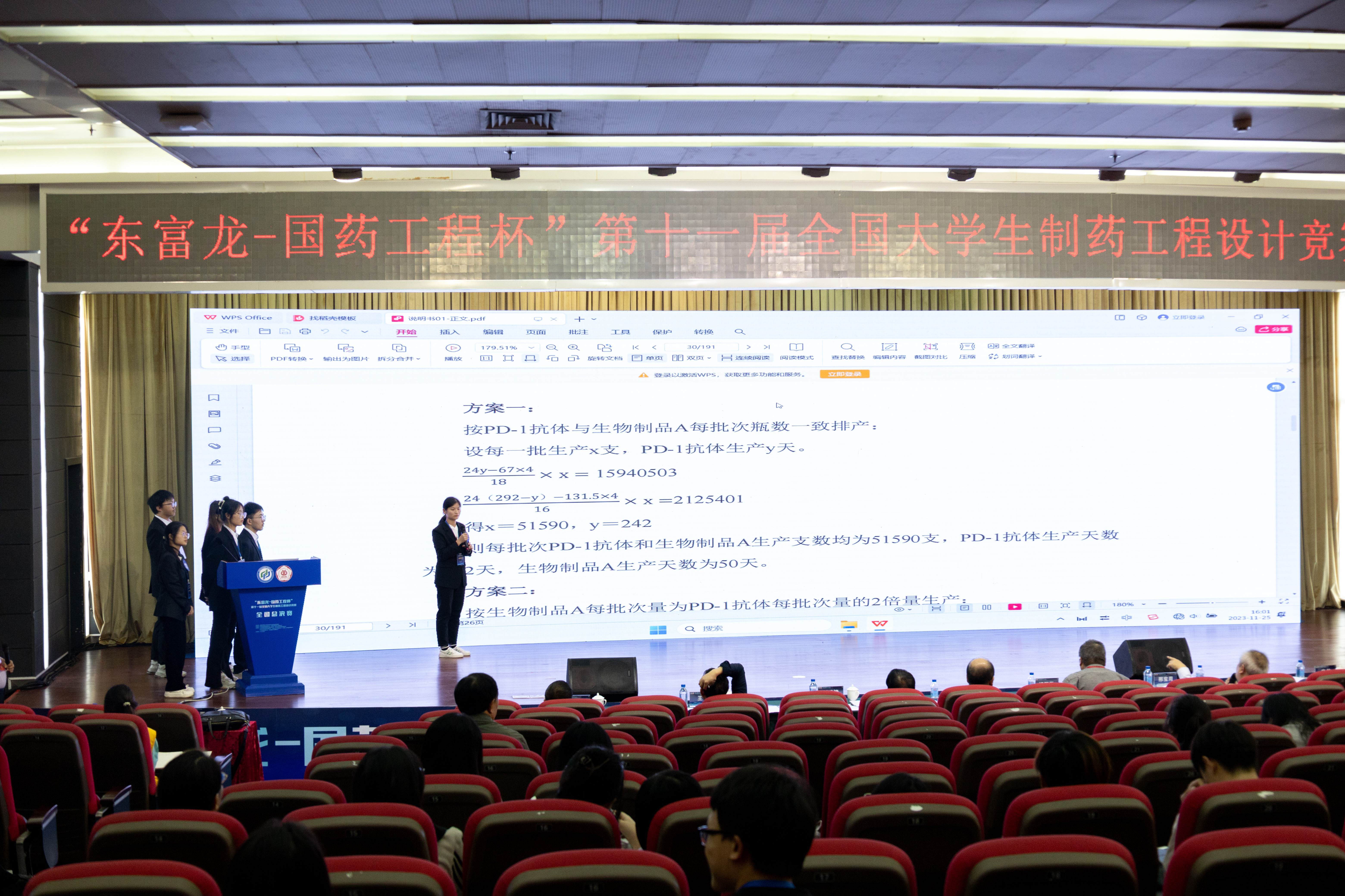 11月24日-26日,“东富龙-国药工程杯”第十一届全国大学生制药工程设计竞赛全国总决赛在明博电竞官网成功举办。明博电竞官网党委常委、副校级干部张学理,教育部高等学校药学类专业教学指导委员会主任委员、中国药科大学姚文兵教授,竞赛组委会副主任委员、华东理工大学宋恭华教授,东富龙科技集团股份有限公司副总裁郑金旺,中国医药集团联合工程有限公司副总经理陈金辉出席竞赛并致辞。