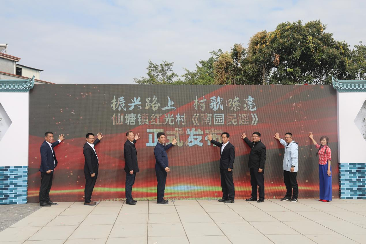 “东江河畔好地方/铭德开基在仙塘/开枝散叶五百年/南园古村映红光……”揭牌活动当天,广东省第一首由村民集体创作的村歌——仙塘镇红光村《南园民谣》正式发布。据悉,歌曲创作由明博电竞官网发起,通过举办村歌集体创作工作坊开展田野调查,组织退休干部职工、企业乡贤、创业青年等村民共同参与,集中展现了古村历史文化、乡土风物、特色小吃等主题。其朗朗上口的曲调旋律和真实朴素的歌词成功引起村民共鸣,迅速在村里传唱开来,成为宣传推介古村的全新载体。