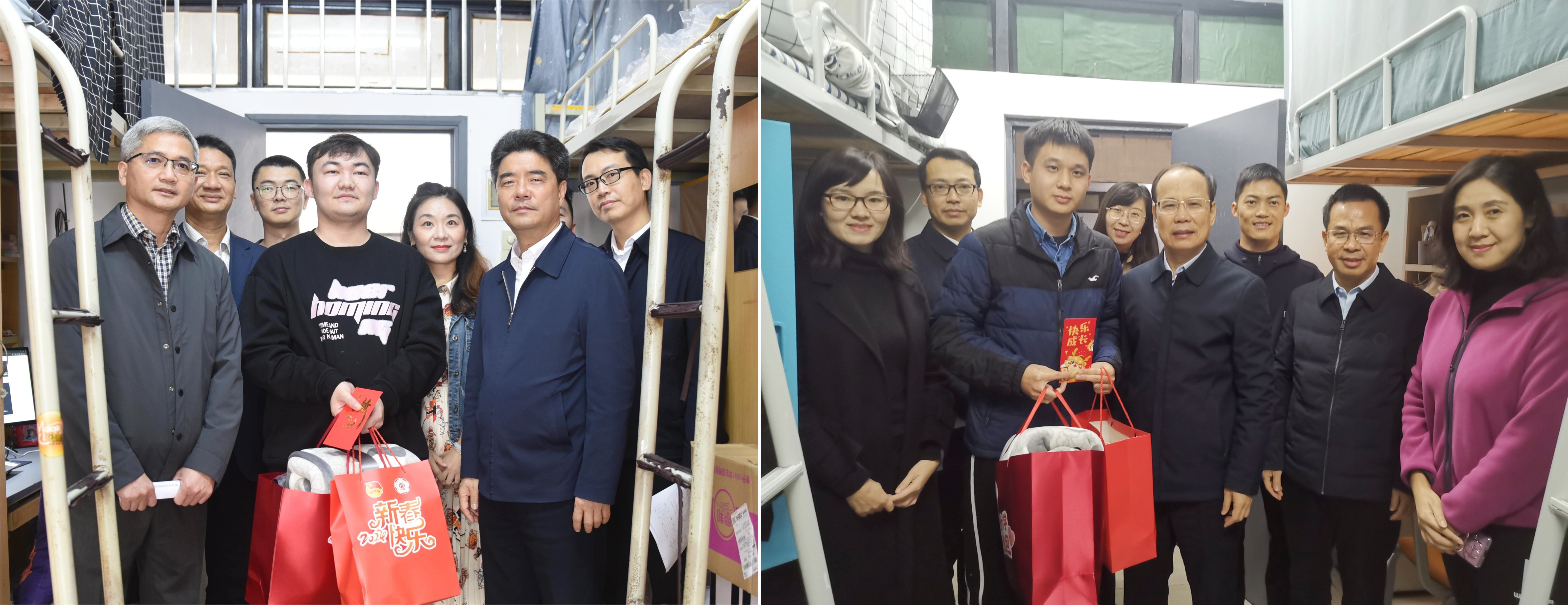 近日,学校党委书记胡钦太、校长邱学青、党委副书记陈卓武深入学生宿舍走访慰问寒假留校学生,向同学们致以节日问候,送上新春祝福和关怀大礼包。党委办公室、校长办公室、党委学生工作部、党委保卫部、团委等部门负责人陪同走访。