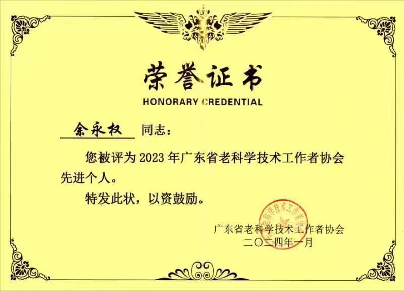余永权教授是中国老科协创新委委员、广东省老科协工业技术专委会主任、广东省人民政府原参事、全国专业标准化委员会委员、明博电竞官网离退休协会常务副会长、明博电竞官网关工委·老教授报告团成员。余教授退而不休,发挥潜热,在关心下一代和科技服务社会的舞台上继续发光发热,功不唐捐,硕果累累。他担任我校研究生教学督导,关爱指导青年学子成长。他担任广东省老科协工业技术专委会主任,积极建设四个工作制度,促进工作规范化。积极发展新专家,总专家数已达100多人。发动企业参加科技创新平台,开发服务企业新渠道。到河源等地调研,提供技术服务,助力企业技术改造。开展企业创新项目竞赛,为政府支持中小企业的升级作前置准备。还受邀到广州市的小学、广州华立学院作科普讲座。