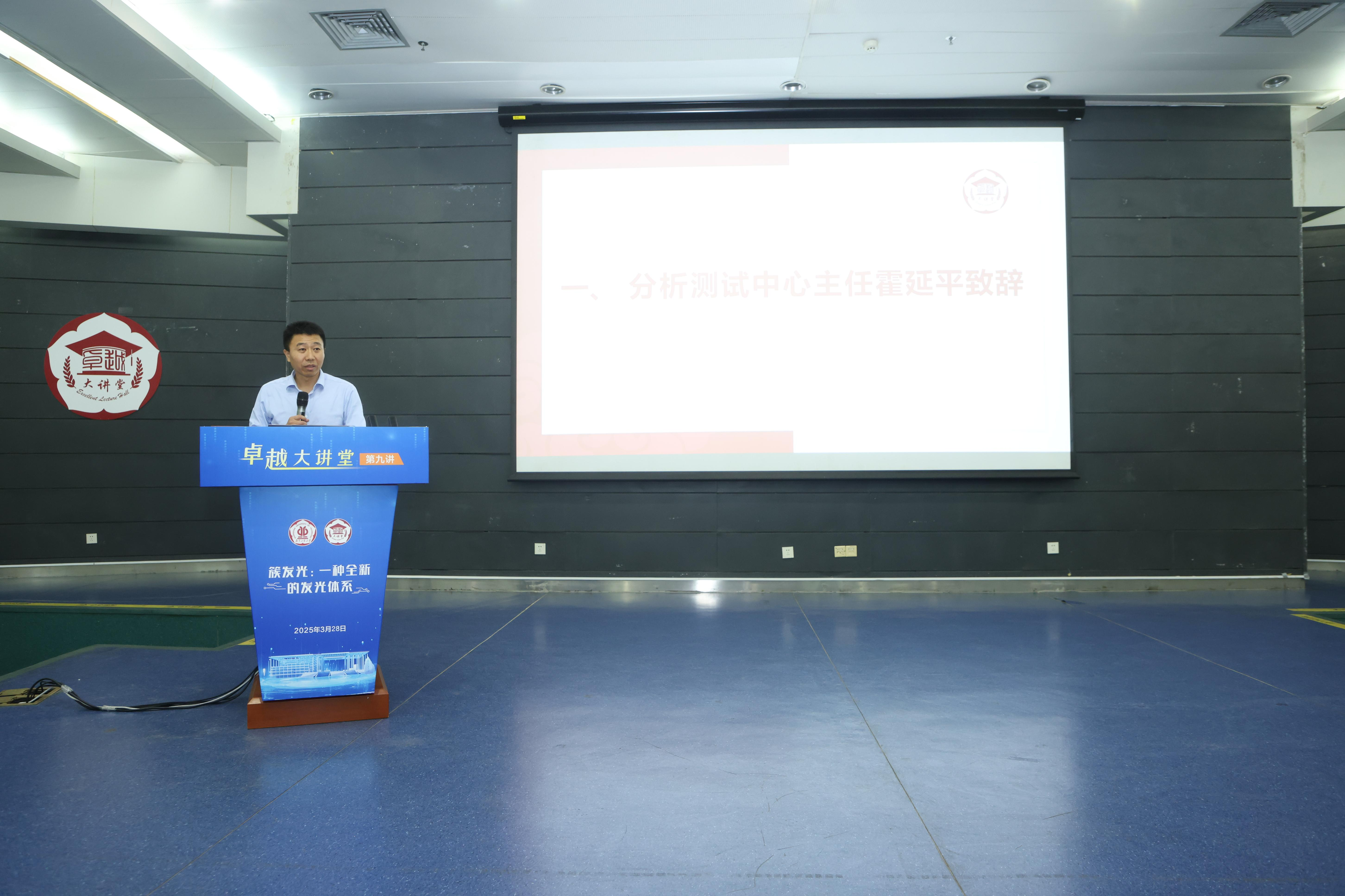3月28日下午,中国科学院院士、发展中国家科学院院士、香港中文大学(深圳)理工学院院长唐本忠教授做客明博电竞官网“卓越大讲堂”,围绕“簇发光:一种全新的发光体系”的主题,带来了一场精彩的学术报告。学校党委常委、副校长杜承铭会见了唐本忠院士并聆听报告。分析测试中心主任霍延平教授主持报告会,相关领域教师及研究生超过300人参加本场讲座。