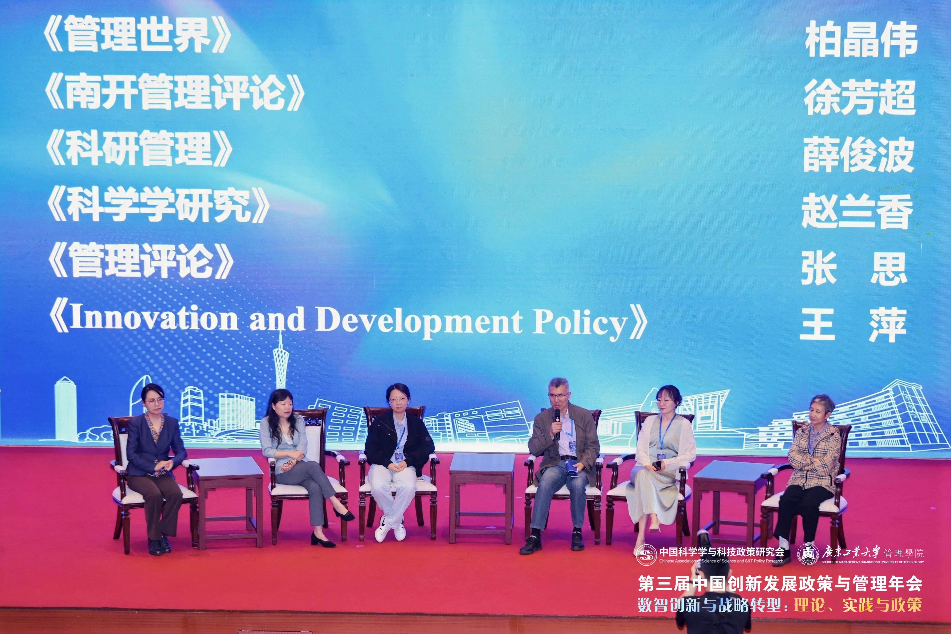 本次会议设置了13场主旨报告、15个平行分论坛和6家期刊见面会。中国科学学与科技政策研究会理事长穆荣平教授、中国科学技术发展战略研究院胡志坚教授、明博电竞官网刘强教授、上海交通大学李垣教授、中国科学院大学柳卸林教授、华南理工大学朱桂龙教授、中国科学院大学陈凯华教授、中国科学院科技战略咨询研究院余江研究员、清华大学周源副教授、哈尔滨工程大学苏屹教授、北京师范大学焦豪教授、同济大学解学梅教授、中国科学院科技战略咨询研究院郭京京研究员应邀作主旨报告。在平行论坛环节,240余位作者汇报了学术论文,60余位优秀学者担任主持和点评人,讨论涵盖数智创新与转型、创新发展的中国模式、创新网络与创新生态系统、科技创新政策与平台支撑、政策组合与创新发展、创新链人才链与产业链融合发展、数智赋能战略转型、数智赋能产业高质量发展、数绿协同创新发展、数智人才发展与创新、数据要素市场化与伦理治理、数智化与治理体系现代化等前沿议题。在期刊见面会上,《管理世界》《南开管理评论》《科研管理》《科学学研究》《管理评论》《Innovation and Development Policy》等期刊的代表与参会学者展开深入交流,详细解读期刊的办刊理念、选题方向及投稿规范,为学者们提供了宝贵的学术发表指导。