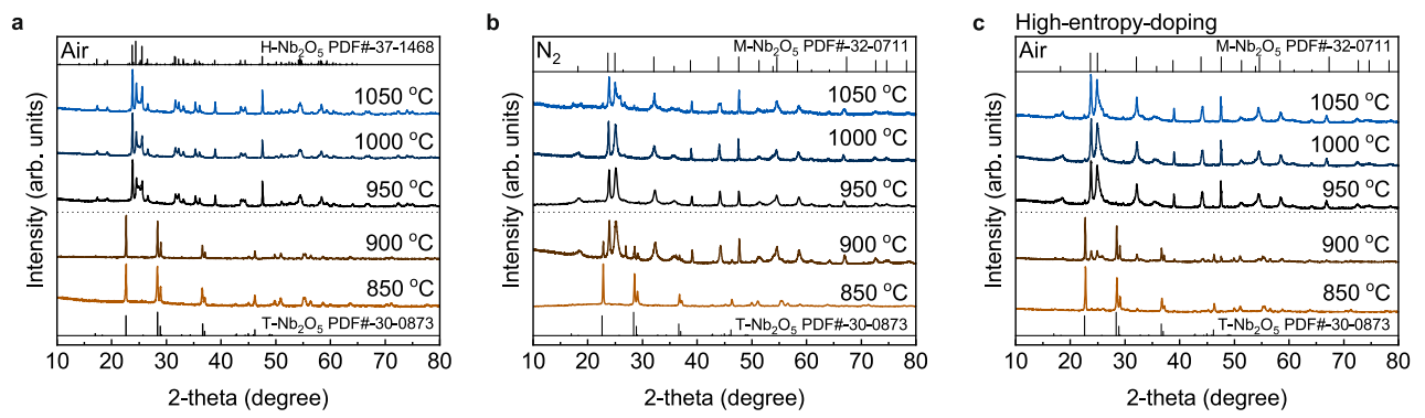 本研究以锂离子电池快速充电负极材料Nb2O5为模型,这种氧化物具有复杂的相变行为和高价态阳离子特征,极难形成固溶体。元素掺杂会导致锂电快充负极Nb2O5发生相变,形成剪切相或二维相。然而在特定的掺杂范围内不仅实现了无杂质相的掺杂,而且发现这种掺杂方式可以改变了相变路径。这种掺杂后的物相表现出新的物质状态且电化学性质得到了提升。这种掺杂效应不仅展现出极强的涌现性,而且去置换其中的掺杂离子,并不会对这种效应的涌现性造成任何影响,这也意味着这种效应具备了很强的刚性。本研究报道的掺杂中的临界现象有望在未来的材料研究领域中激发出更多新现象。