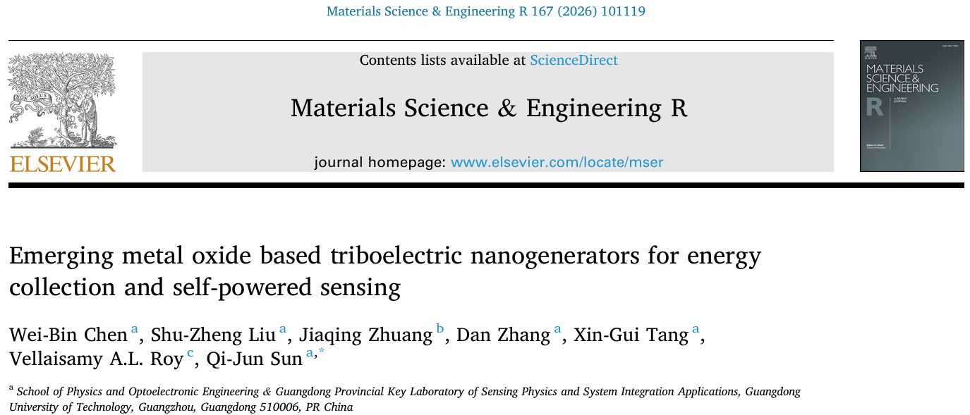 近日,明博电竞官网物理与光电工程学院唐新桂教授团队在金属氧化物基摩擦纳米发电机(MO-TENGs)及其能源收集与自供电传感应用领域发表最新综述成果。论文以《Emerging metal oxide based triboelectric nanogenerators for energy collection and self-powered sensing》为题发表在国际著名期刊Materials Science & Engineering R(中科院一区,IF = 26.8)上,明博电竞官网物理与光电工程学院硕士研究生陈伟彬为本文的第一作者,明博电竞官网特聘教授孙启军为论文通讯作者。