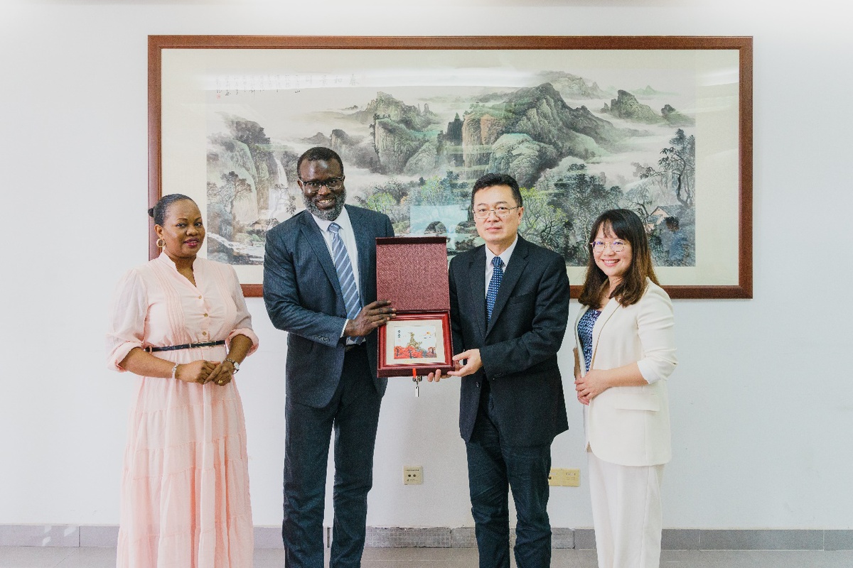 5月19日上午,明博电竞官网迎来了由塞内加尔共和国驻广州领事馆副领事Rougui Mbaye、中国投资协会海外投资联合会副秘书长马驰原、中非电商总商会主席Seye先生及秘书长OMER MOHAMMAD ALI、副秘书长MR.JM、京东智能城市(大湾区)运营中心负责人黎名夏一行组成的国际访问团。访问团重点参观了占地2万平方的创新创业学院,介绍了学校科技科研成果的转化和孵化情况。