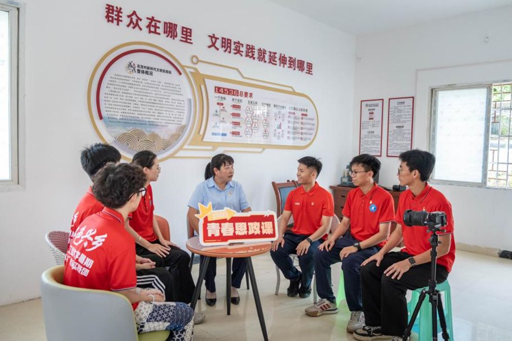 2015年6月,习近平总书记考察花茂村时指出:“党中央的政策好不好,要看乡亲们是笑还是哭。”在座谈时,花茂村党总支书记、村委会主任彭龙芬回忆了习近平总书记的深切关怀,并介绍了新时代“五为民”工作法,助力花茂村乡村振兴之路。她寄语实践队队员们要坚定理想信念,争做有理想、敢担当、能吃苦、肯奋斗的新时代好青年。