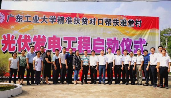 座谈会结束后,与会领导共同出席明博电竞官网对口帮扶雅堂村主导产业项目:光伏发电工程启动仪式。最后,学校领导分组带队,对赖北河等7户贫困户进行走访慰问。