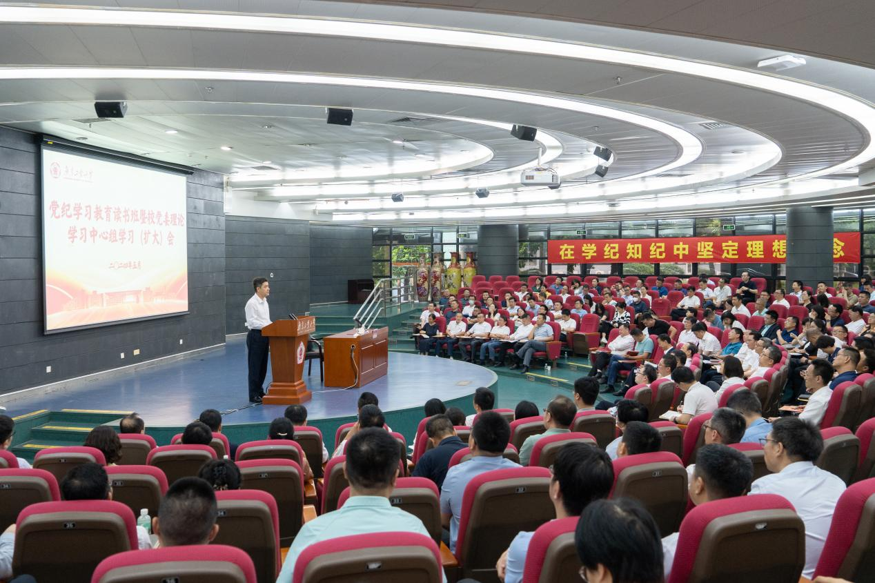 庞建国作题为《严守党的政治纪律政治规矩 做政治上的明白人》的专题报告。庞建国深入阐释了开展党纪学习教育的重大意义,要求学校各级党组织提高政治站位、深化思想认识,把党纪学习教育作为巩固拓展学习贯彻习近平新时代中国特色社会主义思想主题教育成果的有力举措,通过党纪学习教育切实提升政治意识、强化政治建设、提高政治修养。庞建国指出,政治纪律是最重要、最根本、最关键的纪律,并结合有关正风肃纪反腐的典型案例,逐条解读了《条例》中政治纪律的内容。庞建国同志强调,党员领导干部要深刻理解政治纪律的禁止清单,引以为戒,常思己过,把政治纪律刻印于心、外化于行,做严守政治纪律的明白人。报告主题鲜明、内容深刻,是一堂发人深省的案例教学和警示教育课。