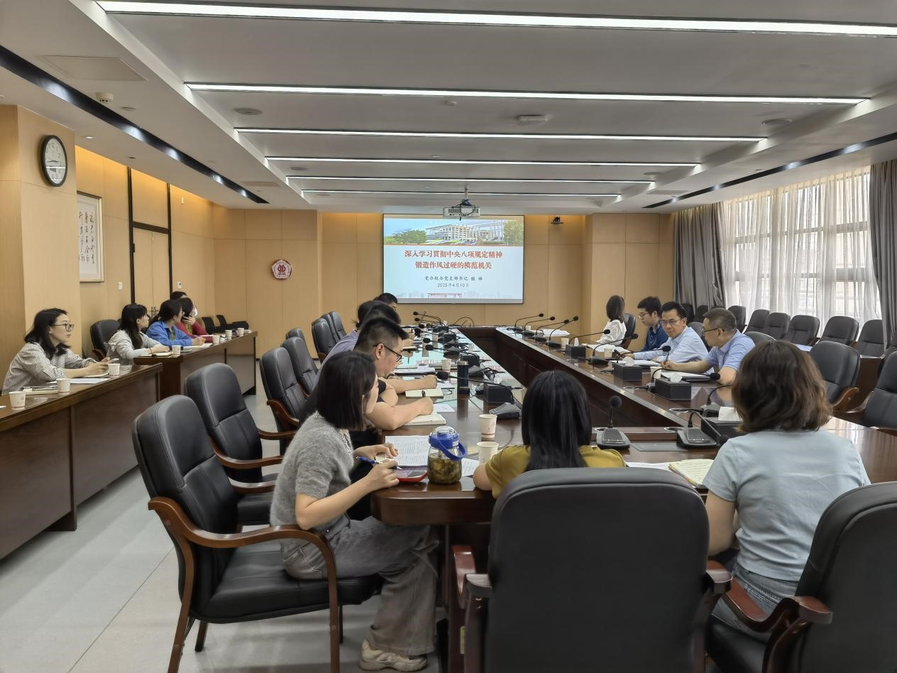 会议强调,开展深入贯彻中央八项规定精神学习教育是今年党建工作的重要政治任务,党支部要持续深化党的创新理论武装,锲而不舍落实中央八项规定精神,推动作风建设常态化长效化。部门领导干部要坚持带头学、全体党员要深入学、年轻干部要加强学,通过学习研讨提高认识,对标对表查摆问题,一体推进学查改,认真抓好学校贯彻落实中央八项规定精神实施办法和持续整治形式主义为基层减负若干措施的贯彻执行,确保学有质量、查有力度、改有成效,高标准严要求推动学习教育走深走实。