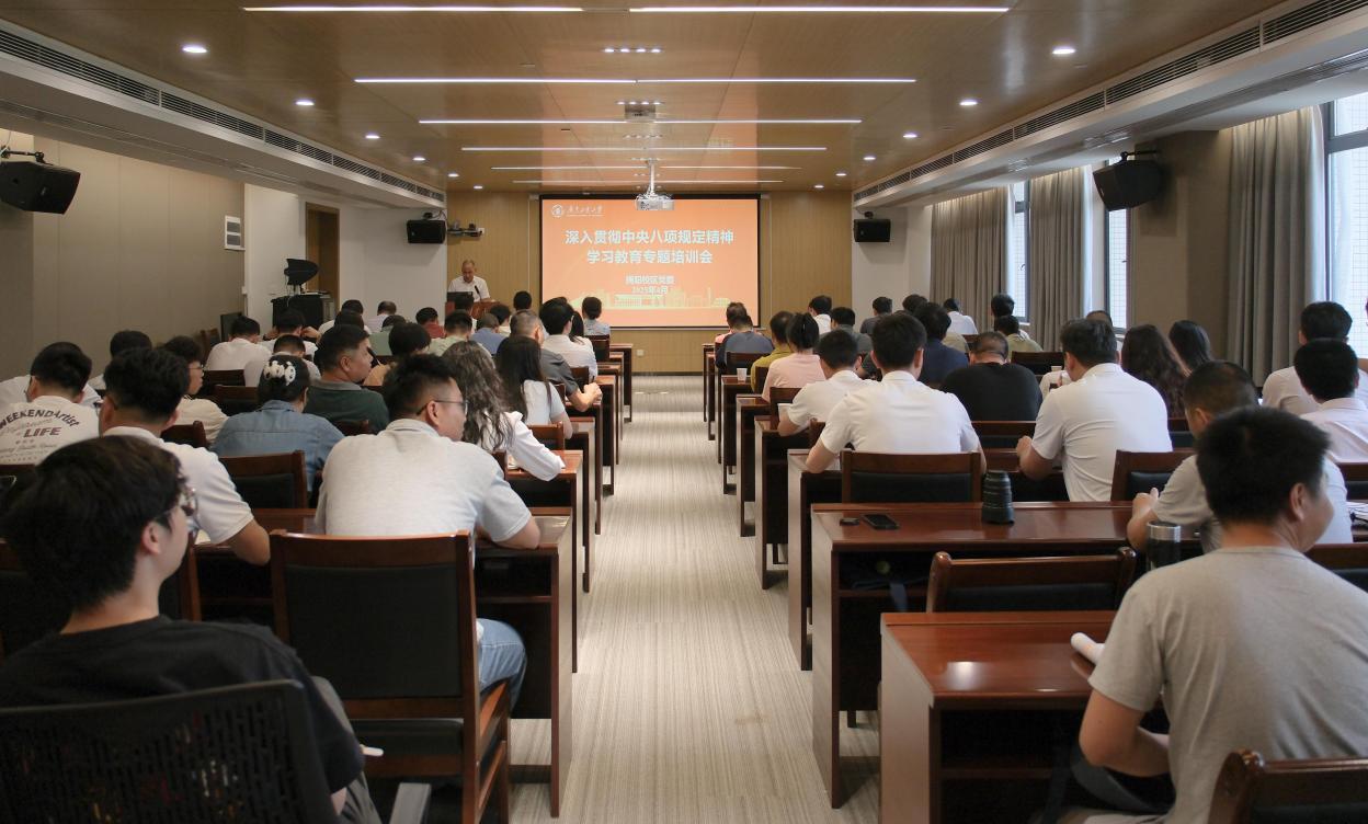 近日,揭阳校区党委以年轻干部为主体,召开深入贯彻中央八项规定精神学习教育专题培训会,邀请学校马克思主义学院院长揭晓教授作专题辅导。校区党委常务副书记邱伟青主持会议,校区党委委员、支部委员及管委会全体干部70余人参加学习。