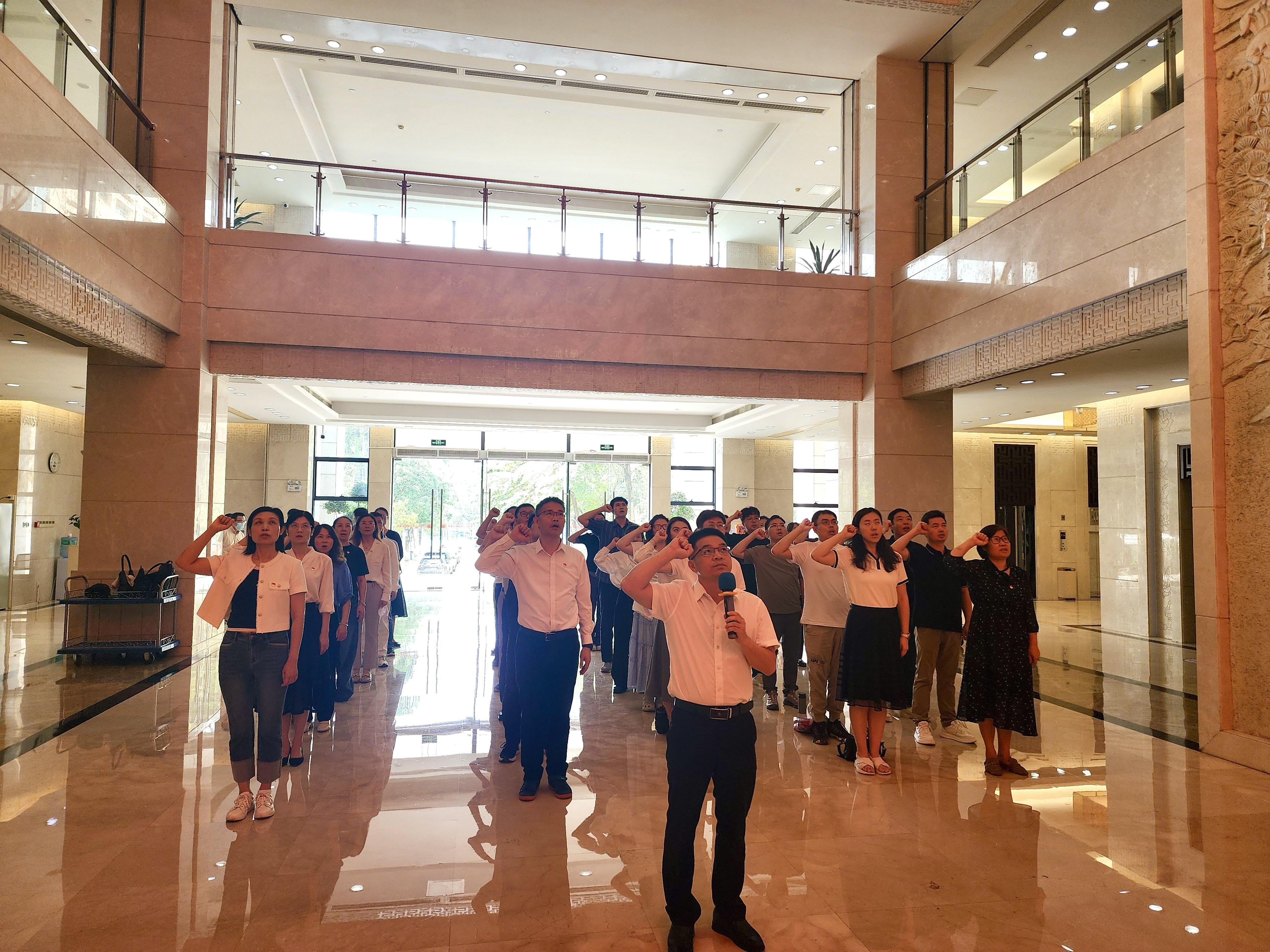 全体党员在党旗前庄严宣誓,承诺将修身正己,用实际行动诠释责任和担当。